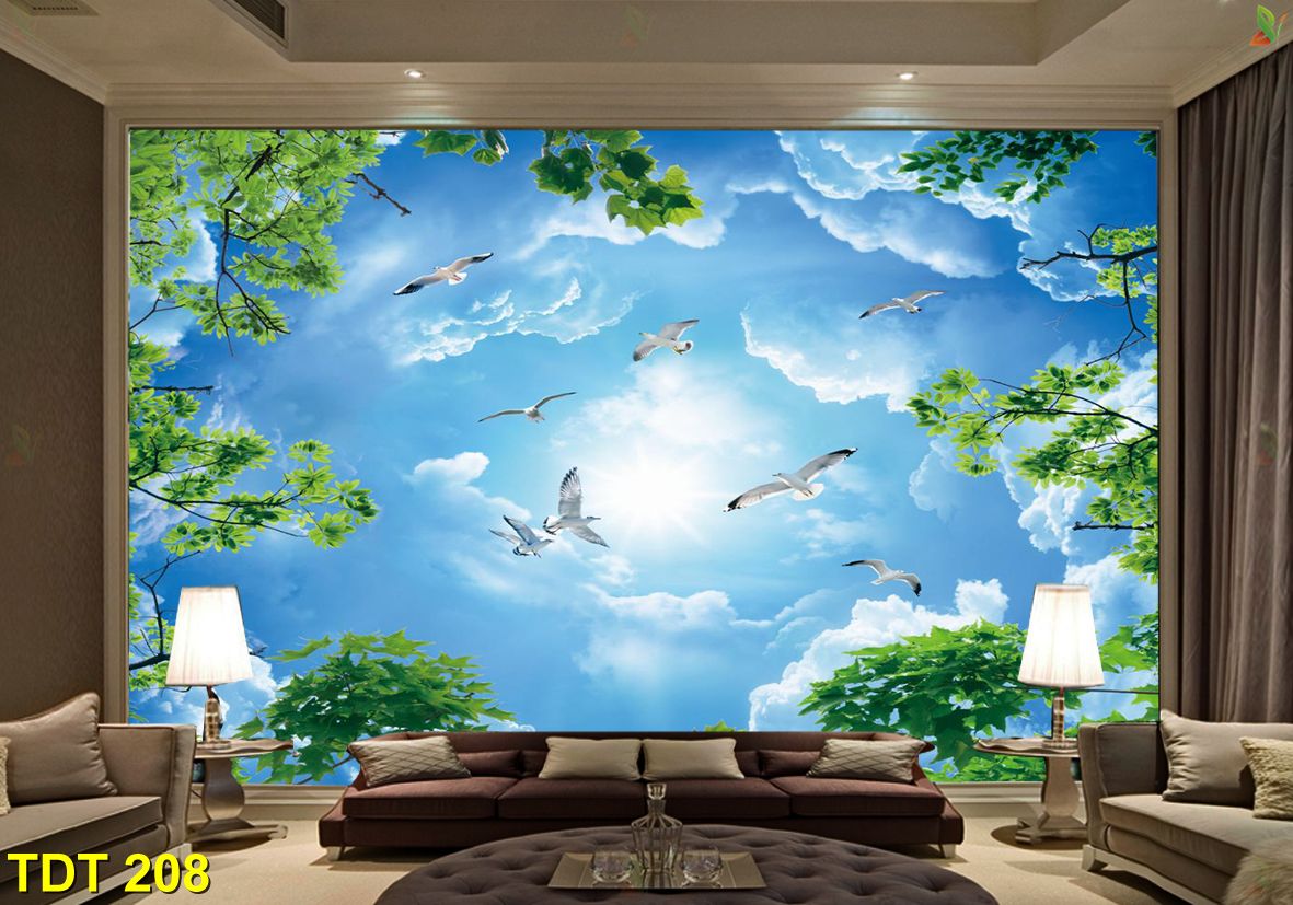 Tranh dán trần nhà, tạo không gian cao hơn thoáng hơn và độc đáo hơn, hay các hoa văn, họa tiết sắc nét tạo điểm nhấn, nhằm nổi bật không gian căn phòng, mang lại nhiều điều thú vị hơn cho cuộc sống.